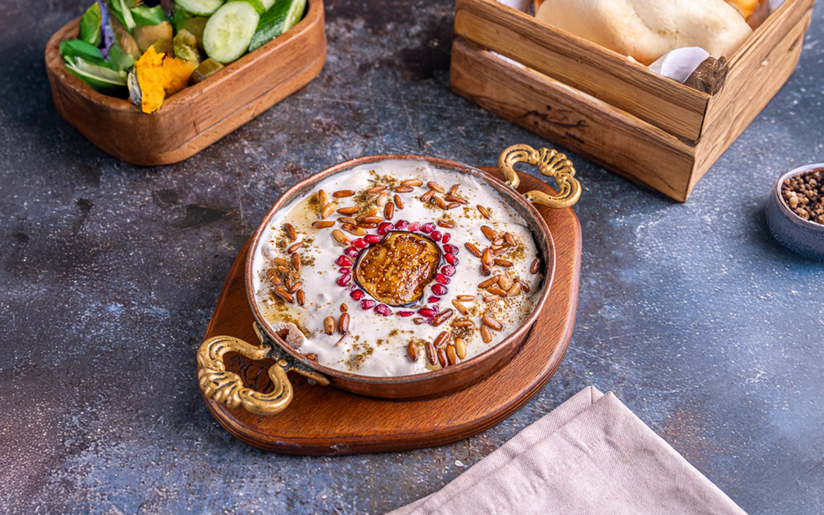fresh iraqi kashta served with dates syrup and iraqi bread