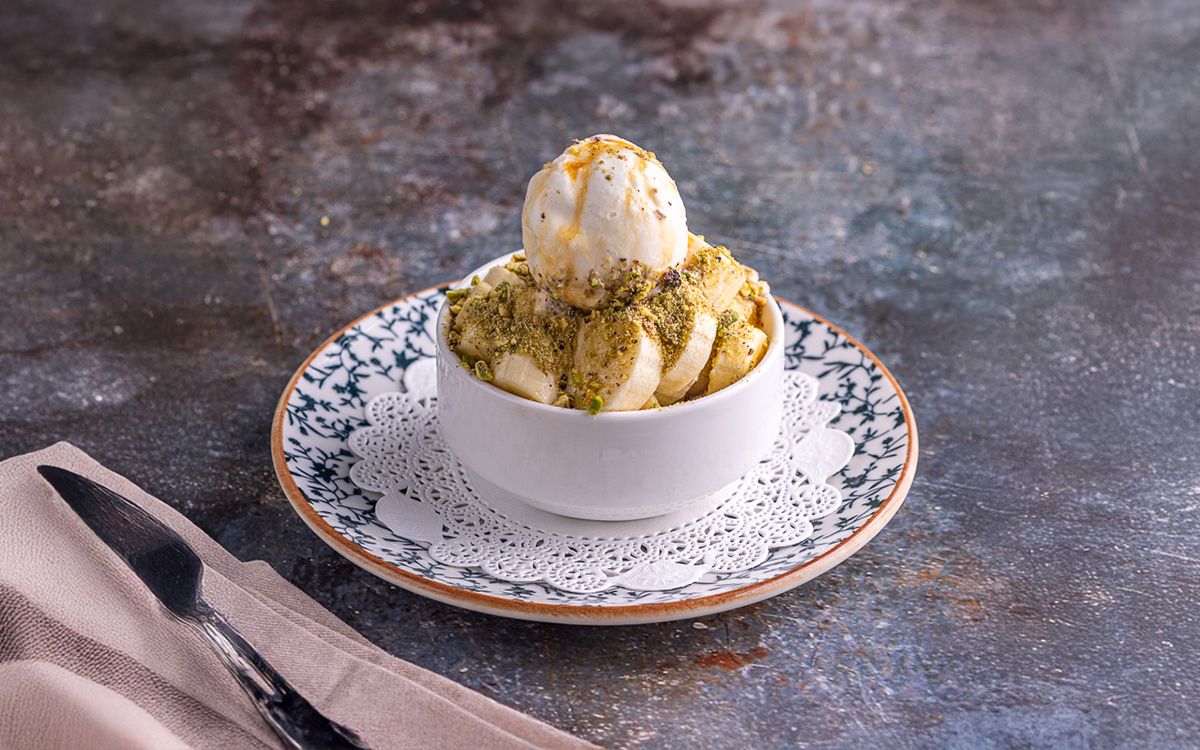 (Pistachio - pistachio sauce - milk - vanilla ice cream)